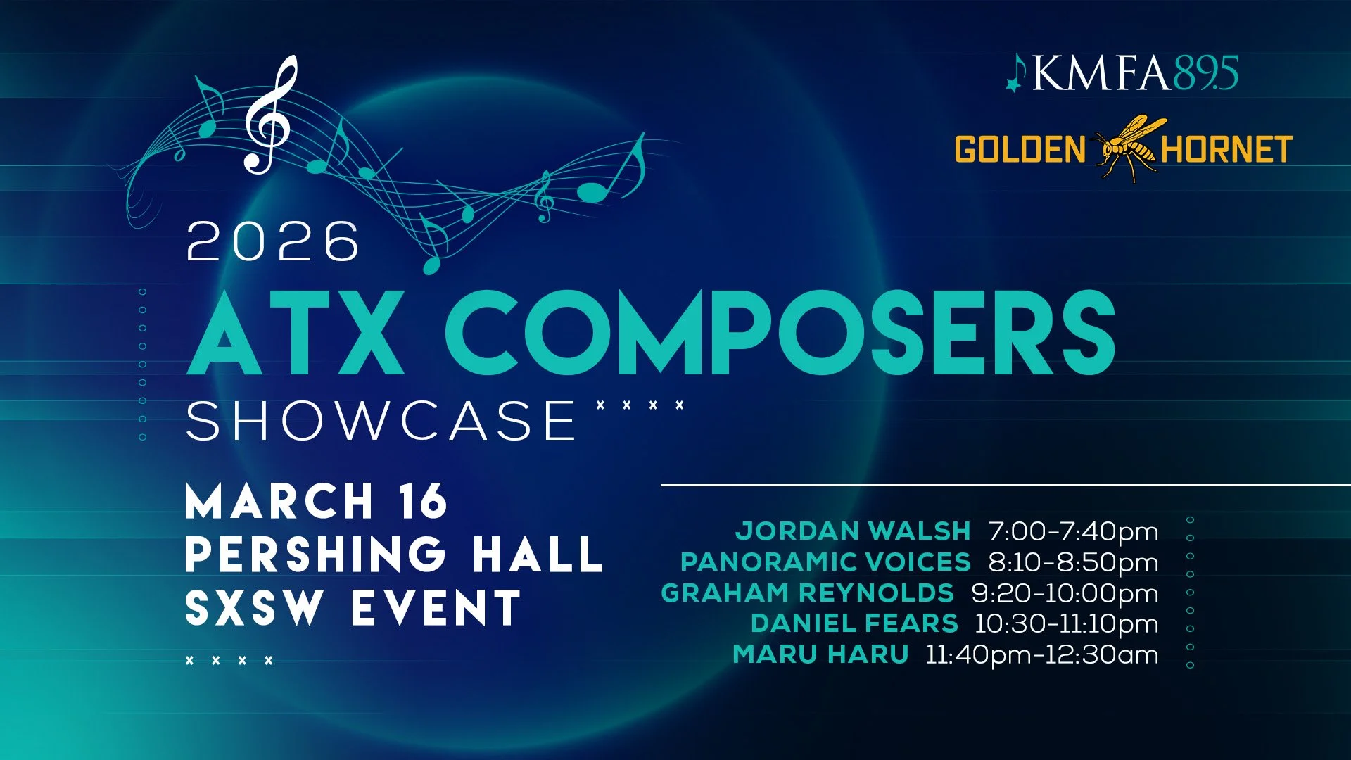 The ATX Composer Showcase is an official SXSW event brought to you by Golden Hornet and KMFA Classical 89.5. It presents an array of local new music artists and contemporary classical talent during the height of the city-wide festival.